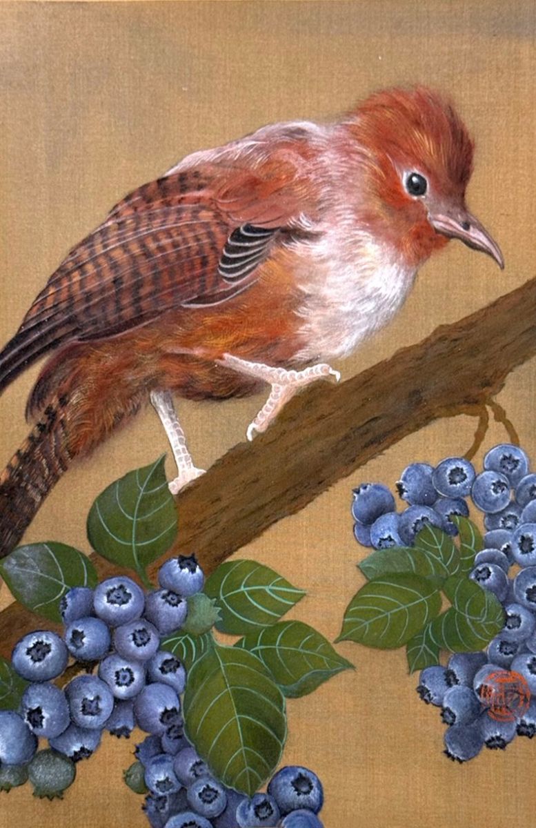 鳥棲枝頭,果實垂熟。時序流轉之中,生命終歸於本真與圓滿。果之成熟,象徵佛性本具,於歲月沉澱與心念澄明中自然顯現。在安然靜定之境,抵達原初的圓融與真實。