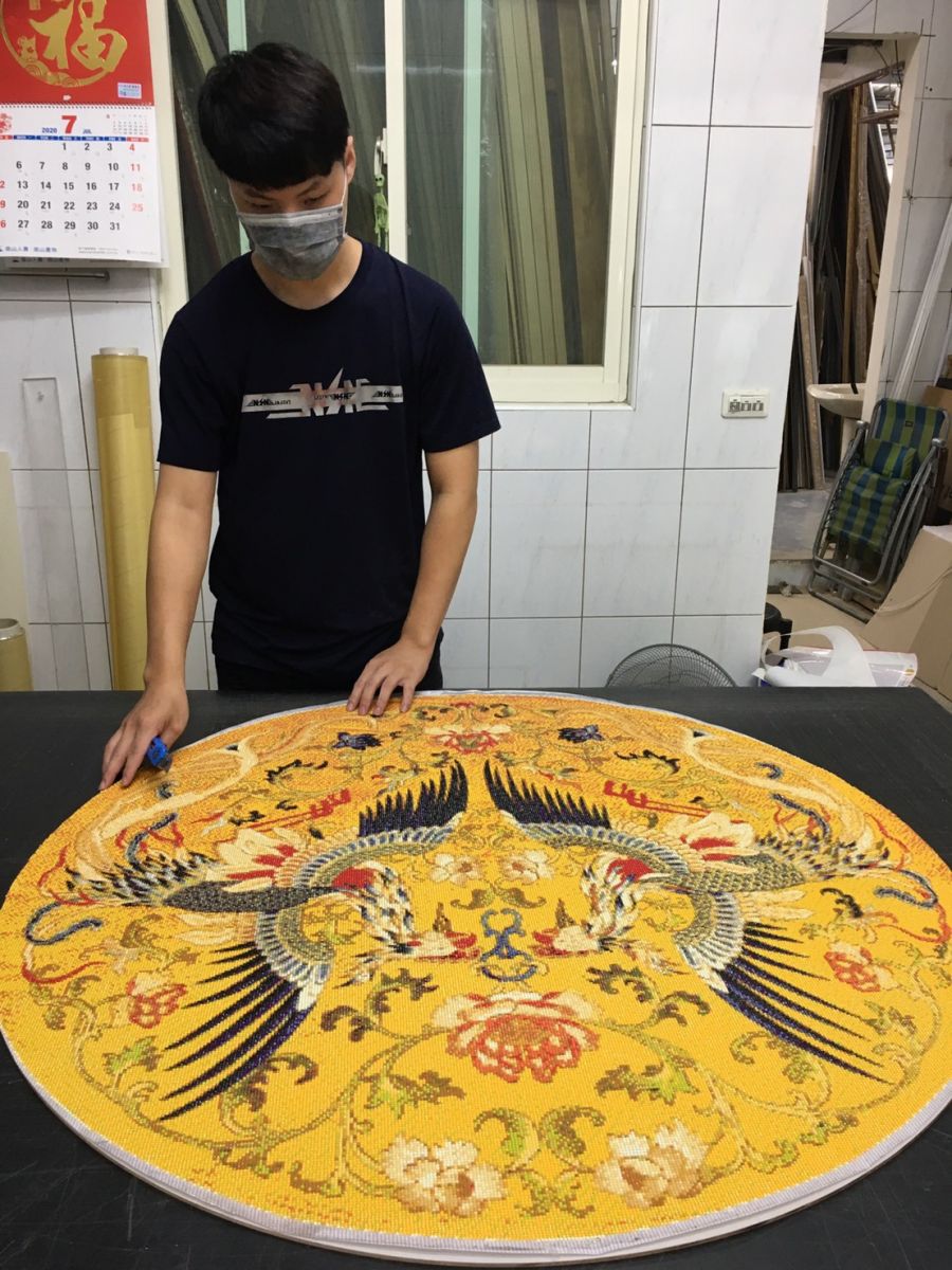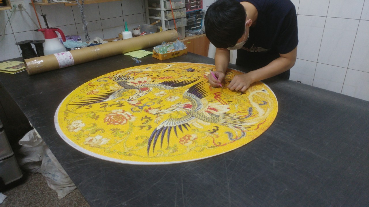 這是一件圓形的鑽石貼作品,工廠師傅與客戶細心討論後,配合客人的作品大小,客製圓框並且調色出符合客人需求的圓框配色。