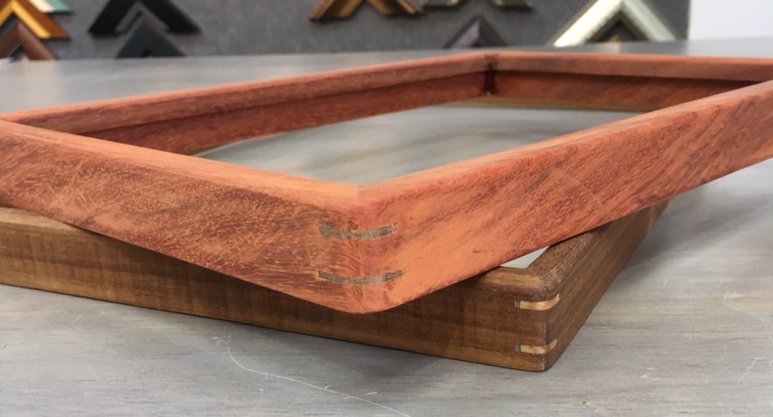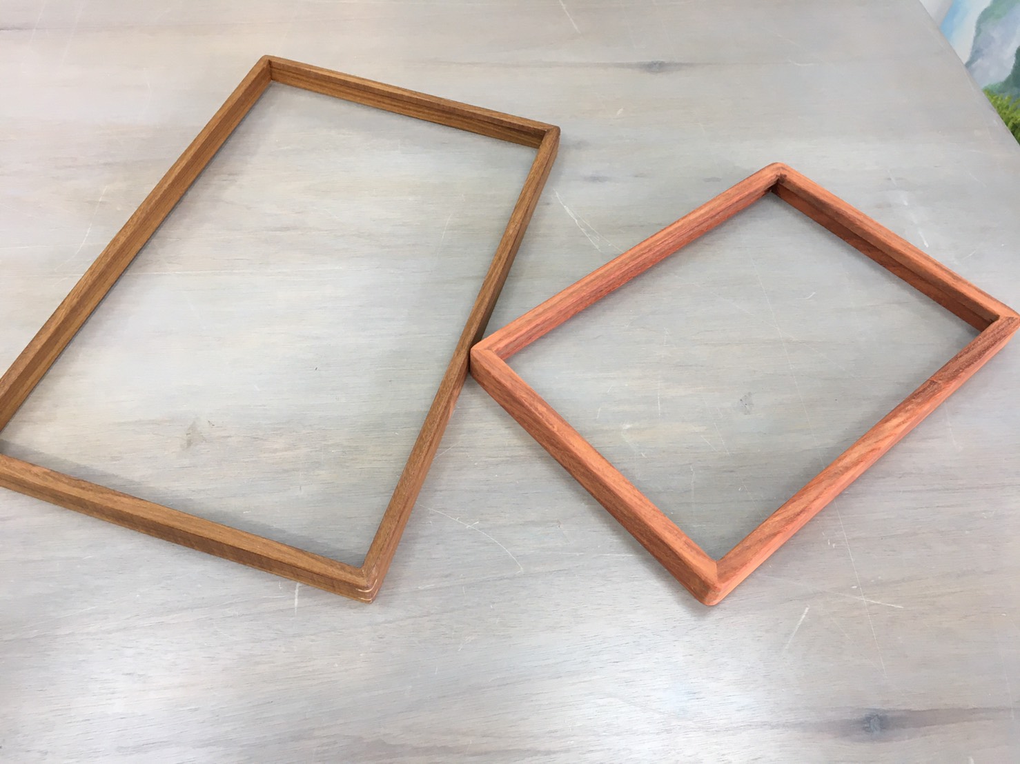 榫接框的寬度、高度、顏色皆可客製化唷! ![]() 紅酸枝:紅酸枝木的新切面有酸枝木特有的酸香氣,故稱之為酸枝。 下圖為未上油的紅酸枝原木榫接框,顏色溫潤,原木的木紋清晰。 ![]() ![]() 下圖為上油後的紅酸枝原木榫接框,色澤更亮麗飽和。 ![]() ![]() 柚木 ![]() ![]() ![]() 都是用大塊的高級原木木頭下去手工裁切製作的唷! ![]() 【原木色榫接框】★★★★★ 可客製手染上色,經過調色、手工染色、風乾、補色等等工序,又是一項畫框界的藝術品誕生。