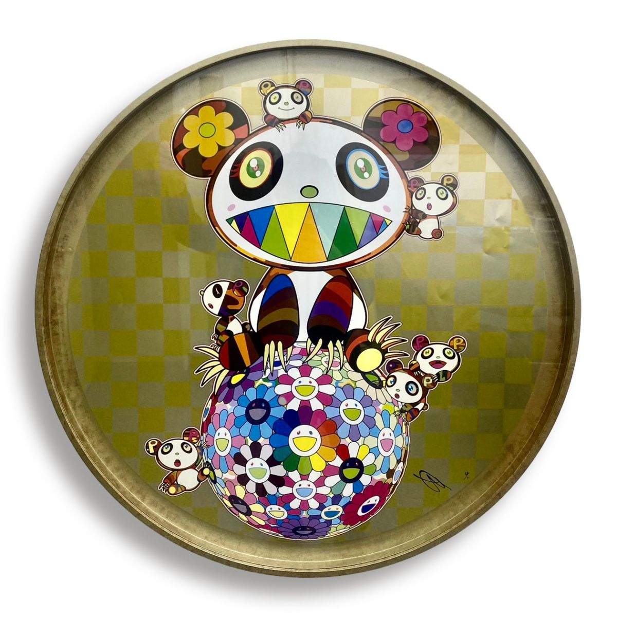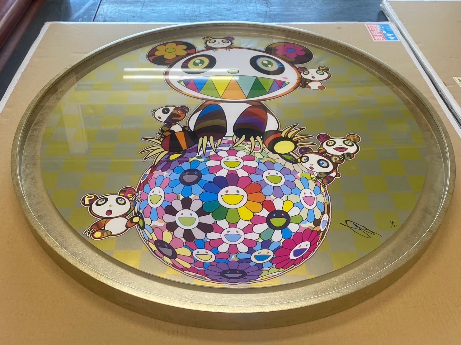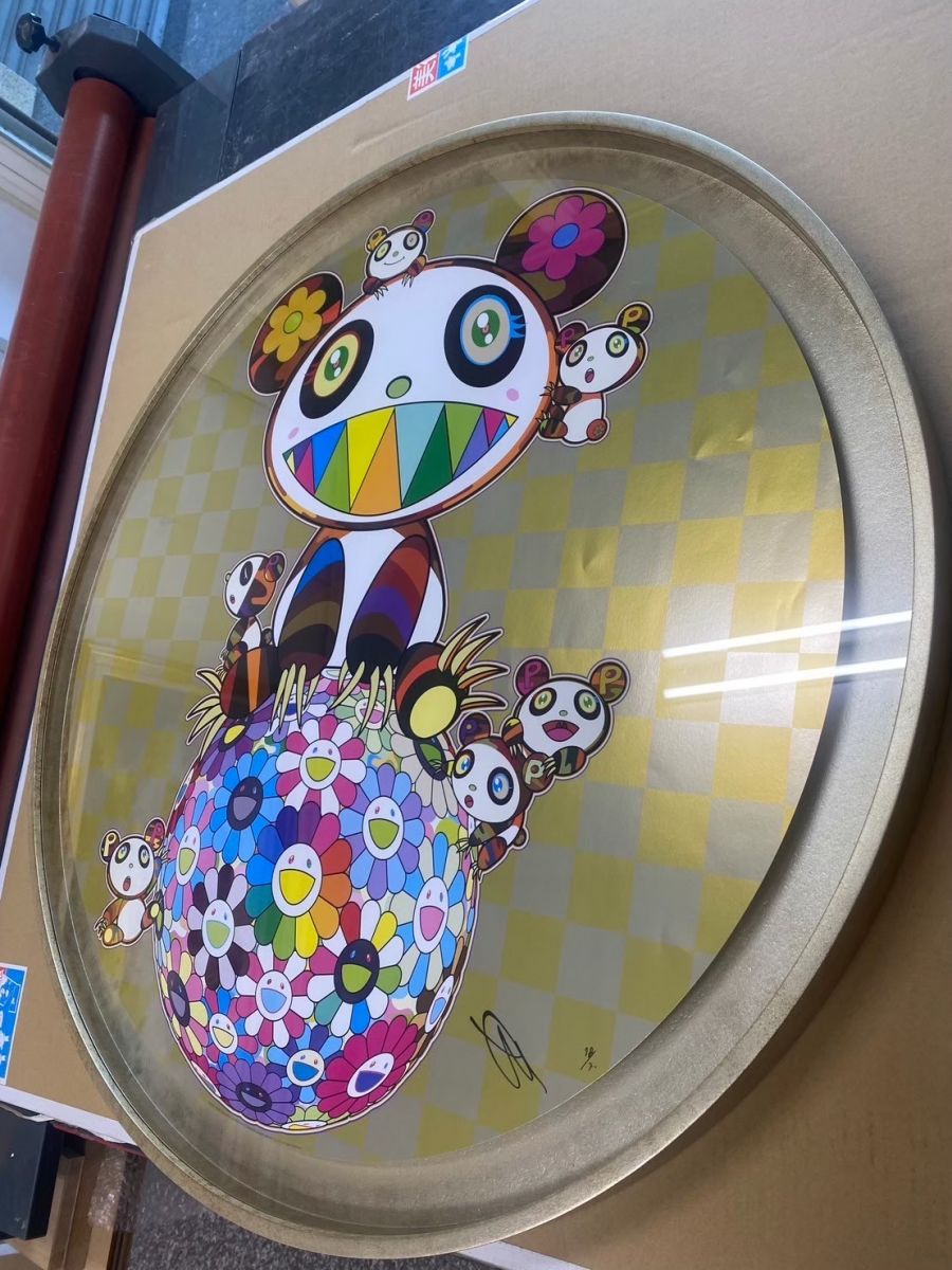 1cm超細面寬+手工打磨噴漆上色+壓克力+立體浮板+無酸卡+美背 在選擇框型的時候,如果是尺寸較大的作品我們都會在結構上面多做評估跟考量。 這件作品客人想要呈現出現代俐落的質感,希望可以製作出面寬1cm以內的立體圓框, 在經過與客人溝通以及松風閣團隊的腦力激盪之下終於製作出了這款純手工噴漆圓框, 色調整體延伸畫面的金色再加上細緻的紋理增加豐富感,欣賞作品的同時也能感受到層次跟變化。 在有限的時間內松風閣畫廊不僅完成了這個挑戰,同時也滿足了客戶的需求