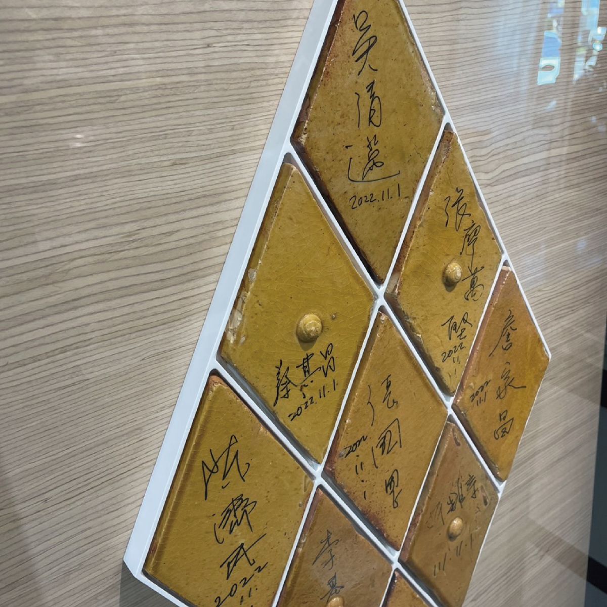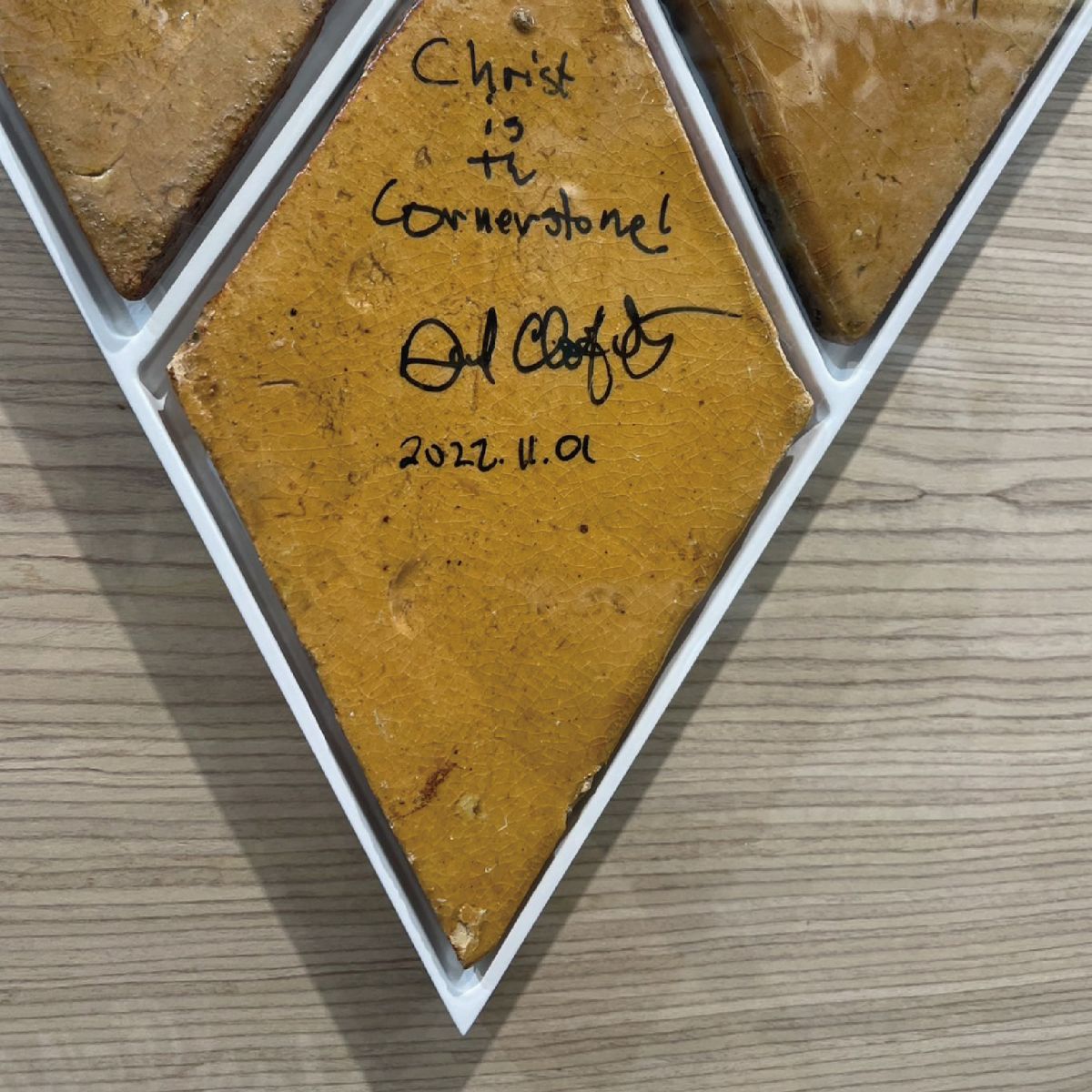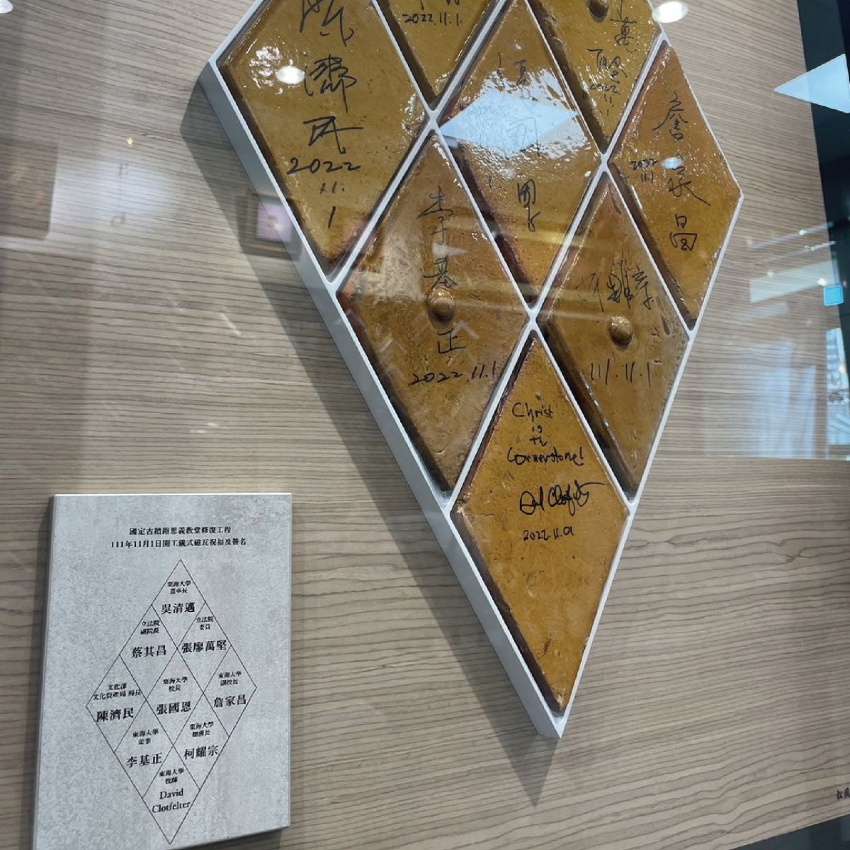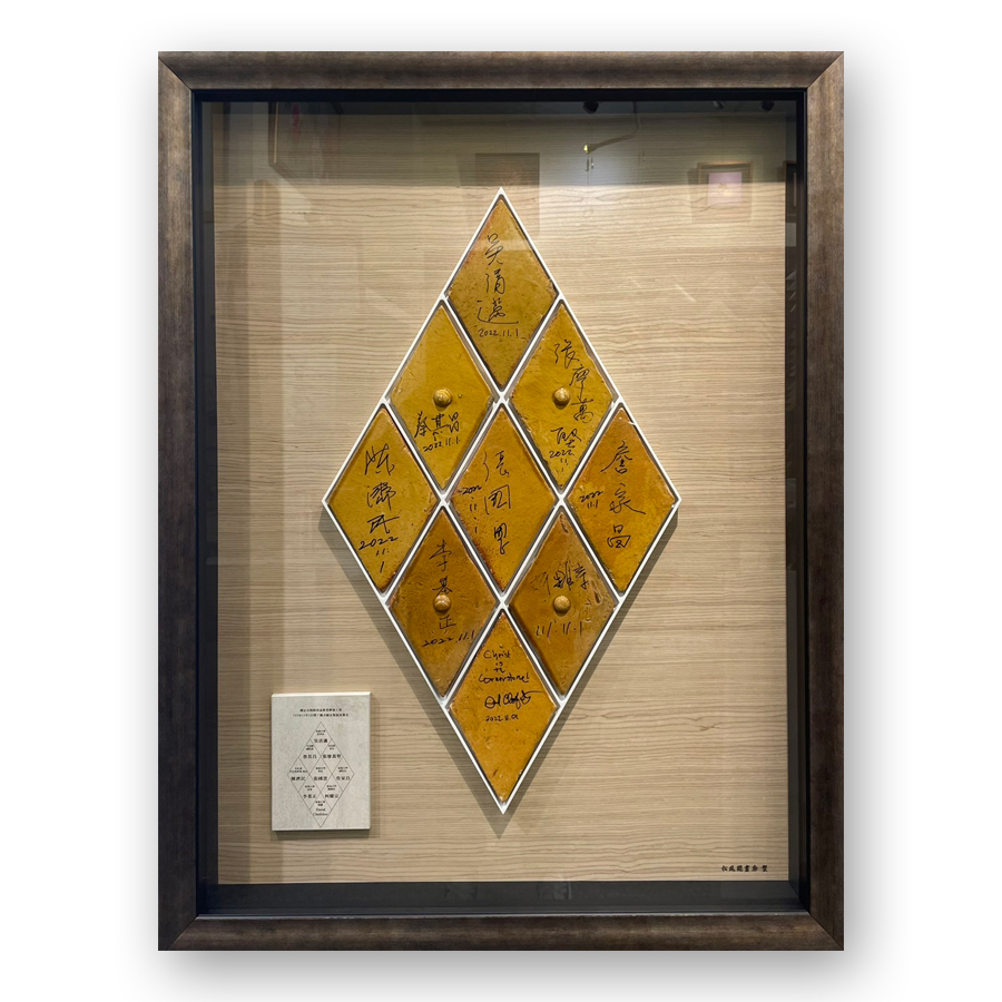 ![]() 松風閣畫廊這次收到一個很特別的任務, 這些上面有簽名的小陶片來自東海大學的路思義教堂,