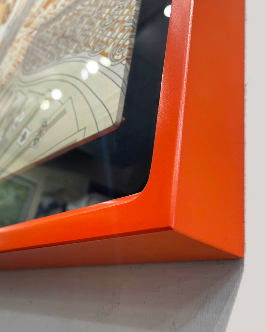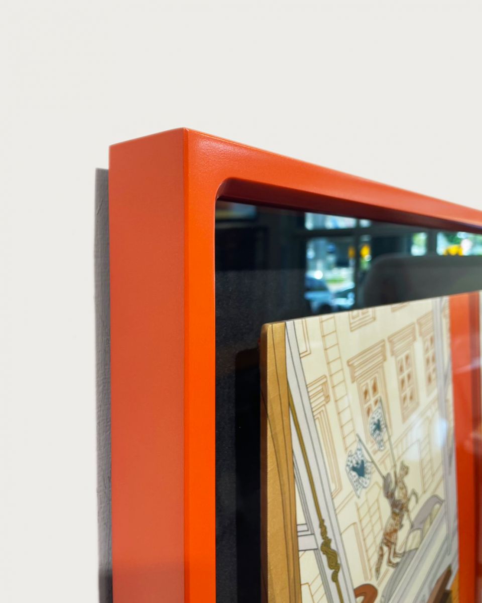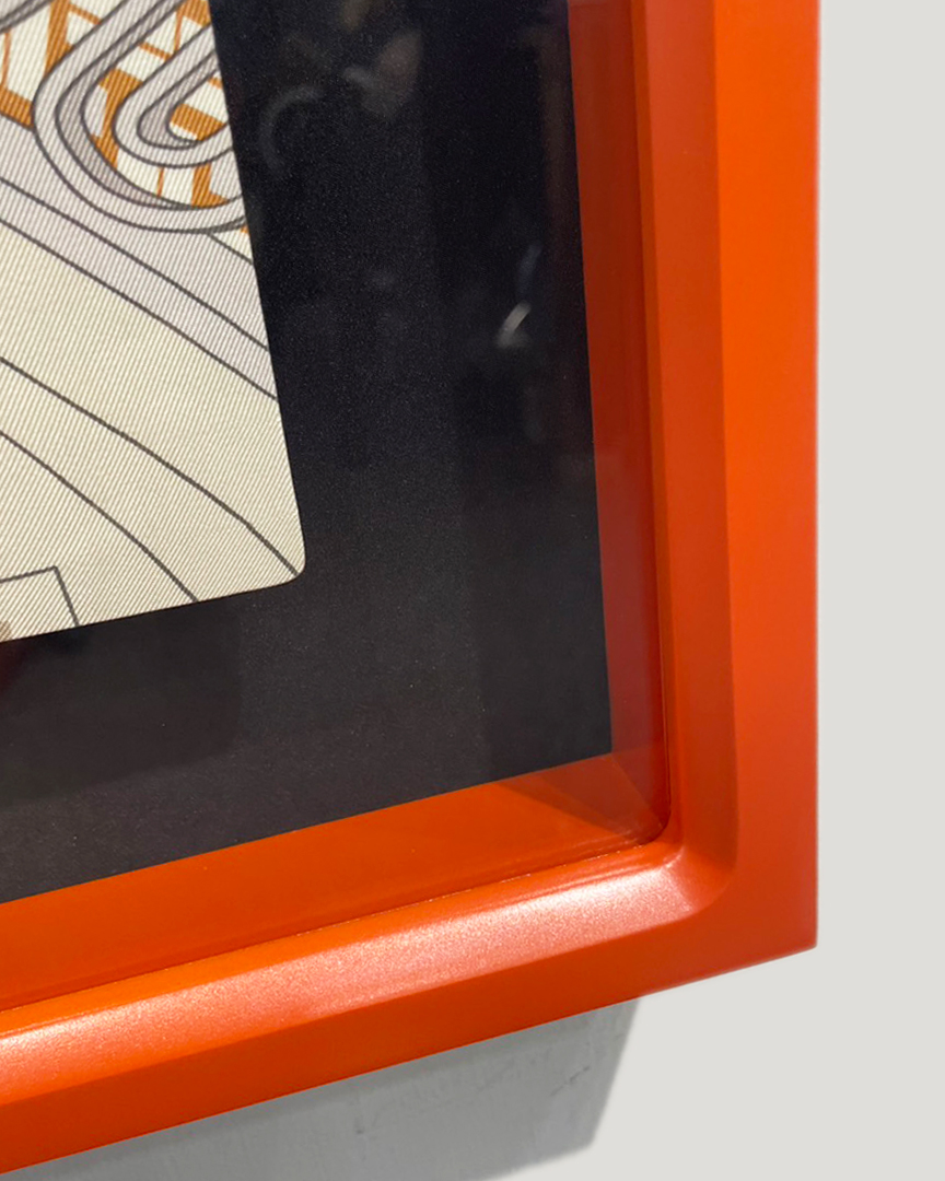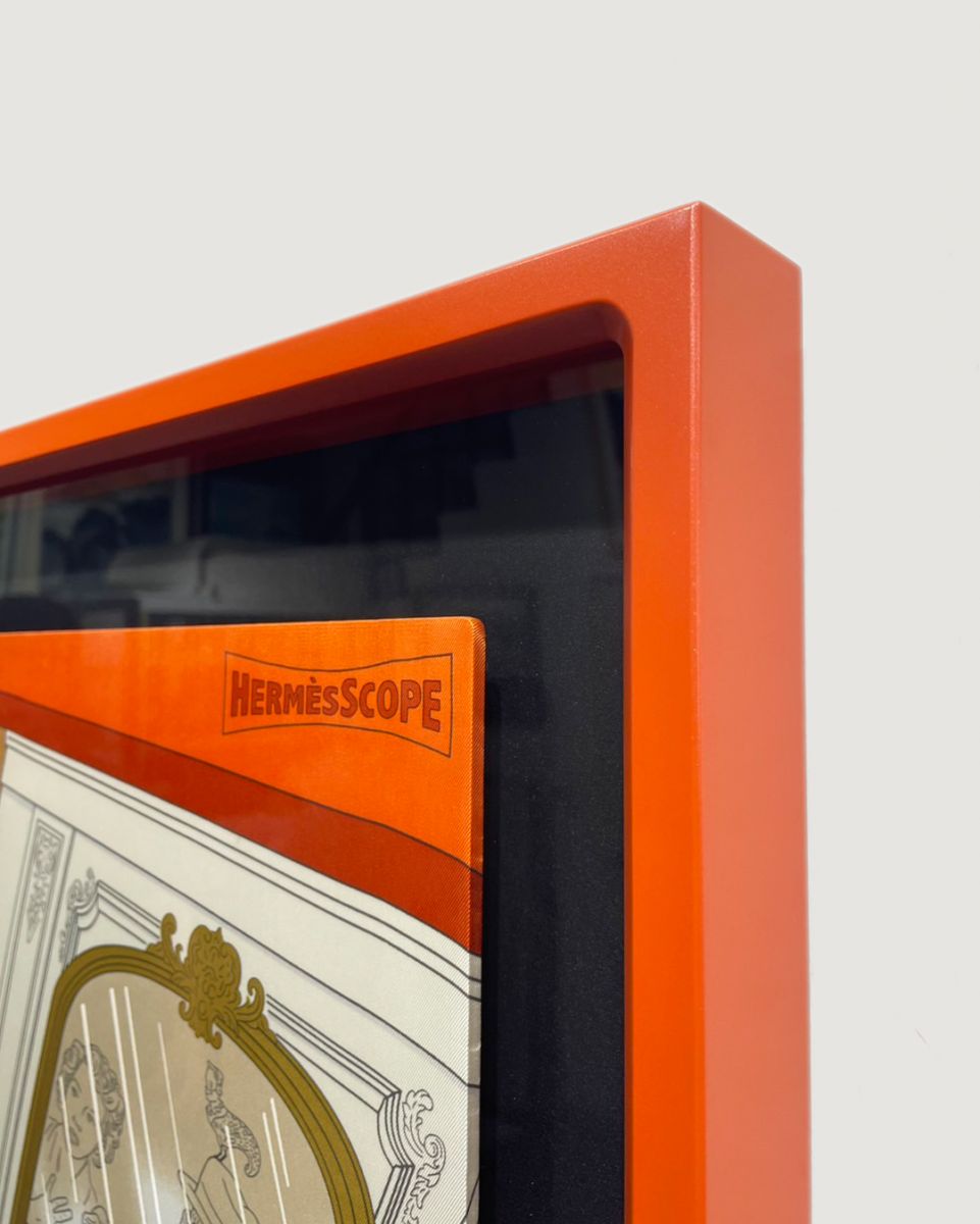 經典愛馬仕橘來了,把牆面變成潮流主場! 松風閣畫廊的手工噴漆框,不只是框,更是品味的宣言! 這次打造的愛馬仕橘框,靈感來自經典配色,不僅搶眼,更擁有精緻的內凹圓角設計,搭配珠光質感,整體質感直接拉升好幾個檔次! 深色底布和立體浮板,營造出層次分明的視覺效果, 讓每一條絲巾都像是置身於藝廊中的藝術品 不管是絲巾、畫作還是收藏品,通通都能以這樣的方式展現你的個人品味,從細節到整體,都能讓人一眼驚艷!