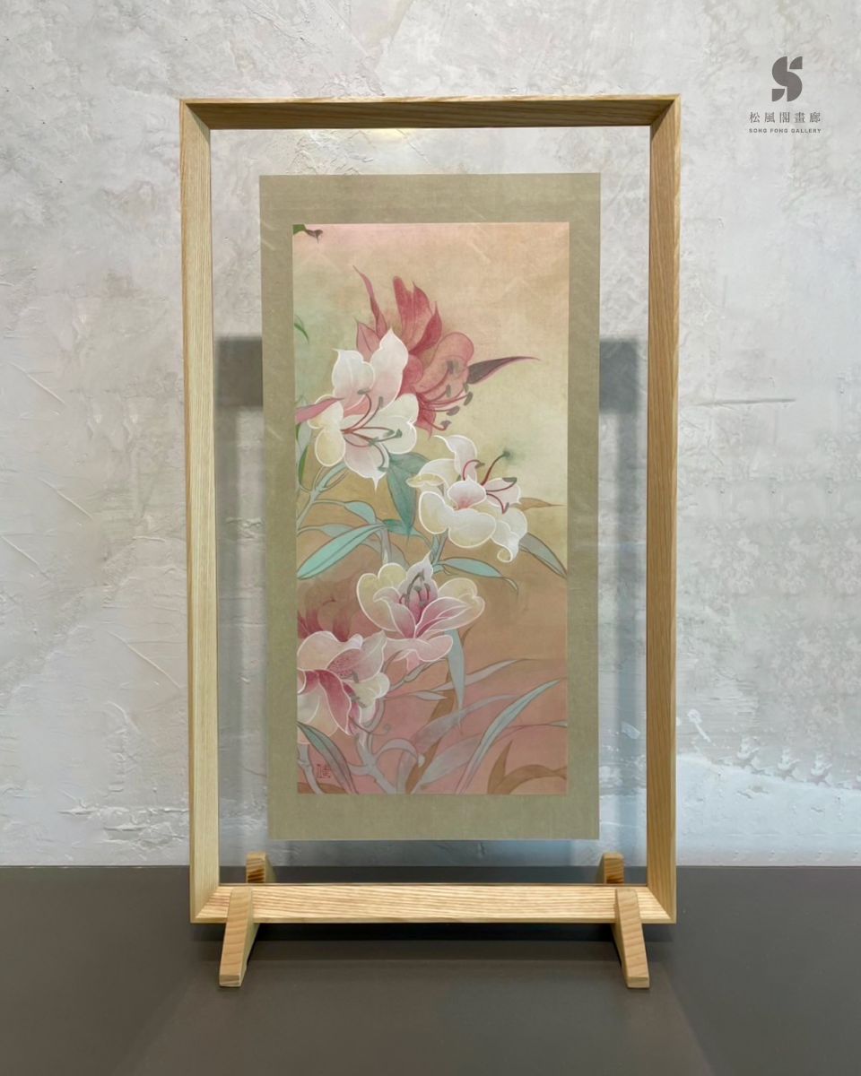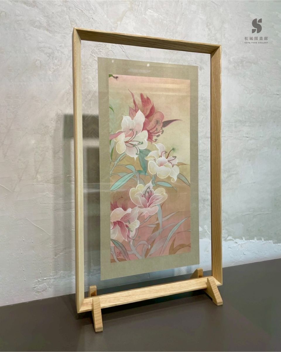 畫作以懸浮方式裝裱於透明框內,輕盈通透,不僅凸顯畫面細節與層次,也讓作品在光影流轉間展現不同風貌,