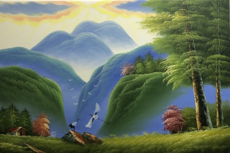 山水畫是我國傳統的吉祥畫,山常青、背靠大山、水(財)長流、平安之意