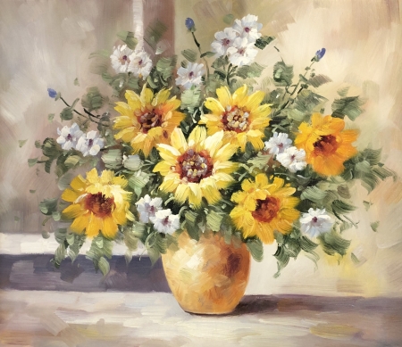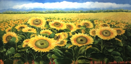向日葵的花色明媚鮮艷,花朵燦爛大氣,花莖挺拔,昂首向陽,有黃金之花的美稱,充滿正向積極能量,是吸引貴人益友、遠離小人的最佳飾物。葵花畫最宜掛在家中玄關、臥房,向日葵有如太陽般的正面能量,掛向日葵畫在臥房可全面提升主臥者的旺盛運勢,事業前程如日中天。