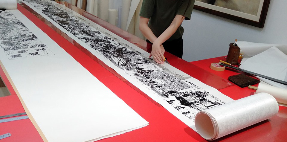 以下要介紹的作品較特殊,是一件長型版畫作品,一幅長度約長達10公尺~接下來讓我們一邊欣賞照片,一邊了解整個製作過程吧!