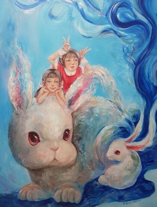 這幅作品是除夕前一天完成的,一張賀歲的作品,寓意為喜兔成雙,祝各位2023喜事也成雙