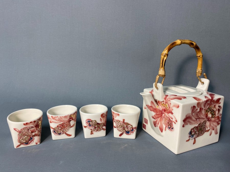 陳虹清 | 鴻運當頭牡丹金魚四方壺茶具組