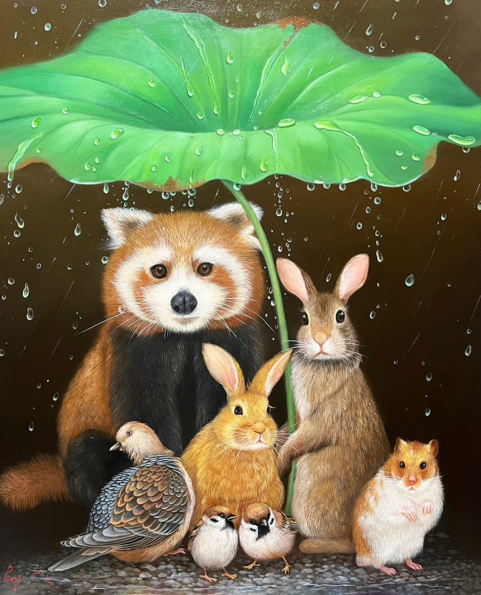 想像一下森林裡的動物遇到下雨了, 該怎麼辦?