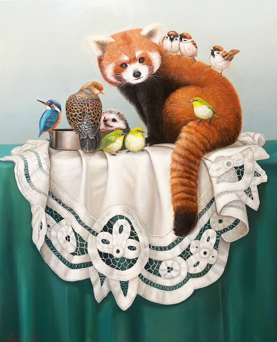 精緻的餐桌與雷絲桌布,邀請可愛動物們 來享用一頓豐盛的午餐,