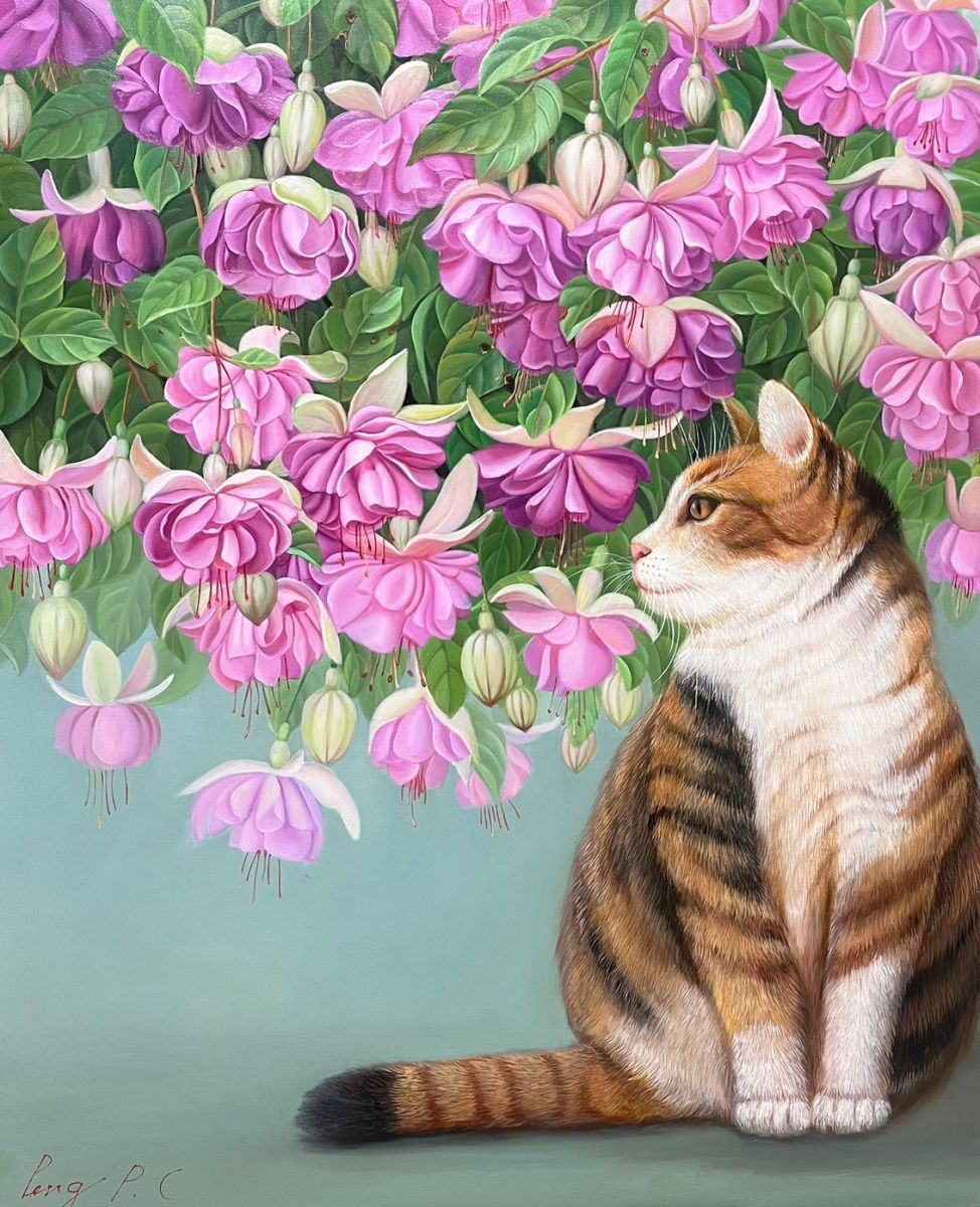 一隻貓坐在邊上,似是等待主人的到來,願主人平安吉祥。