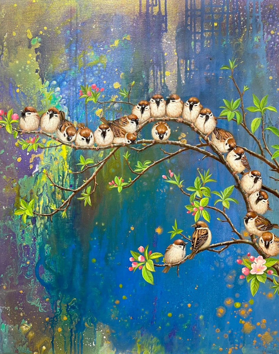 小時候總是會看到成群的麻雀在樹梢或電線上成列隊排隊,