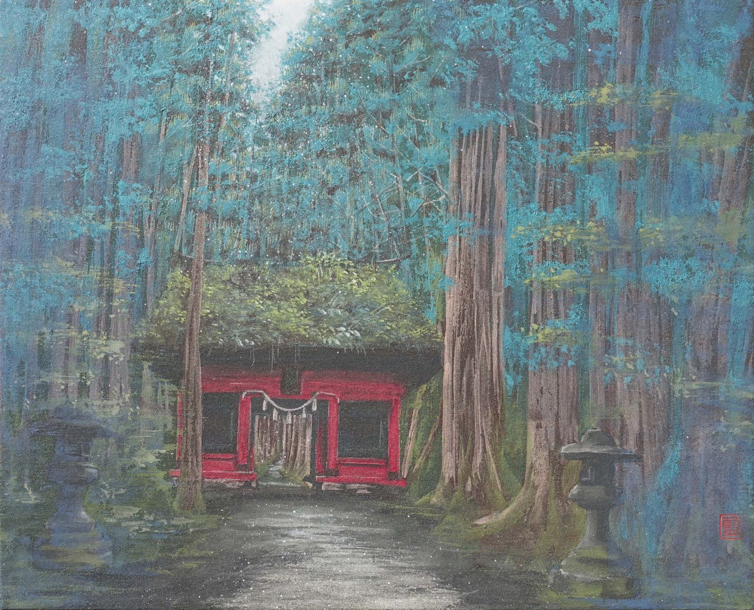 取材自日本長野的戶隱神社隨神門,是從塵世進入神聖空間的過渡,光線從樹葉的縫隙灑下來,彷彿雪景般浪漫,建築物靜靜地在此屹立百年,見證著四季變換與絡繹不絕的參拜者,也體悟了人的渺小。