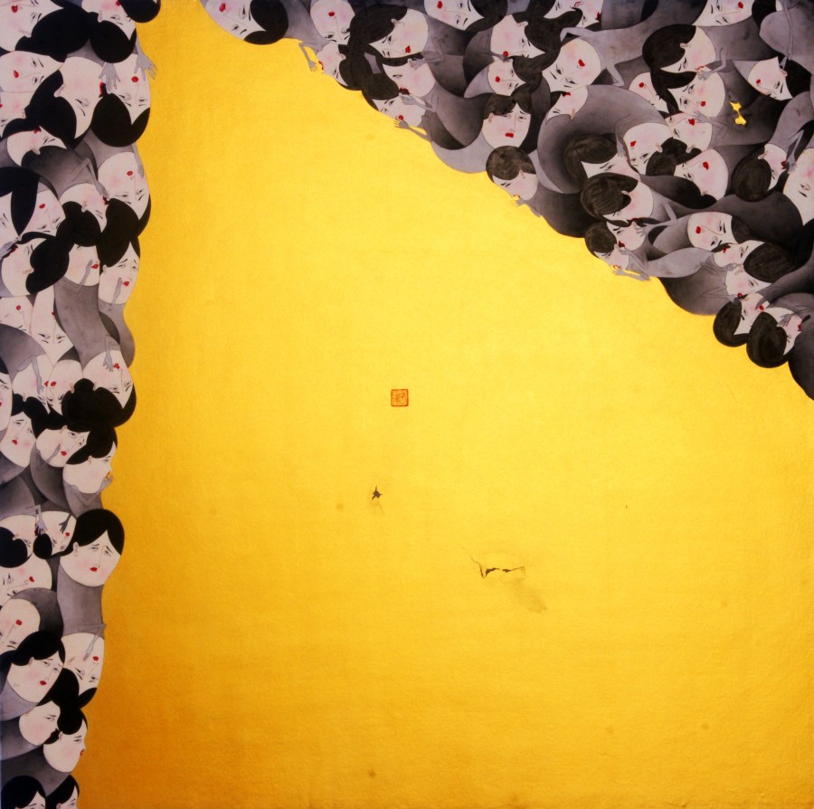 材質 : 蟬衣宣、 金泥雲母、 墨、 片狀顏料