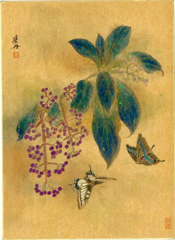 材質 : 金箋紙、 墨、 礦物顏料設色