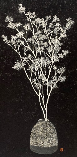 材質 : 胡粉、盛上、礦物顏料、水墨紙本