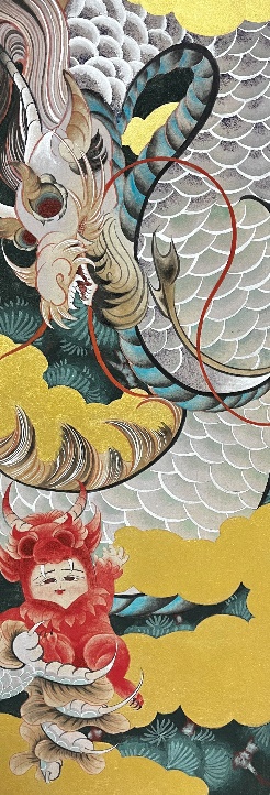 呼應2024在農曆新年上甲辰年獨特的龍年地位,藝術家創作了〈龍見赤子〉來慶祝這特別的一年。畫面描繪一神龍盤旋、金雲圍繞,爪捧赤子而赤子神情自在可愛,表現出神龍的溫柔、親切,將在甲辰年為眾生帶來庇佑及好運。