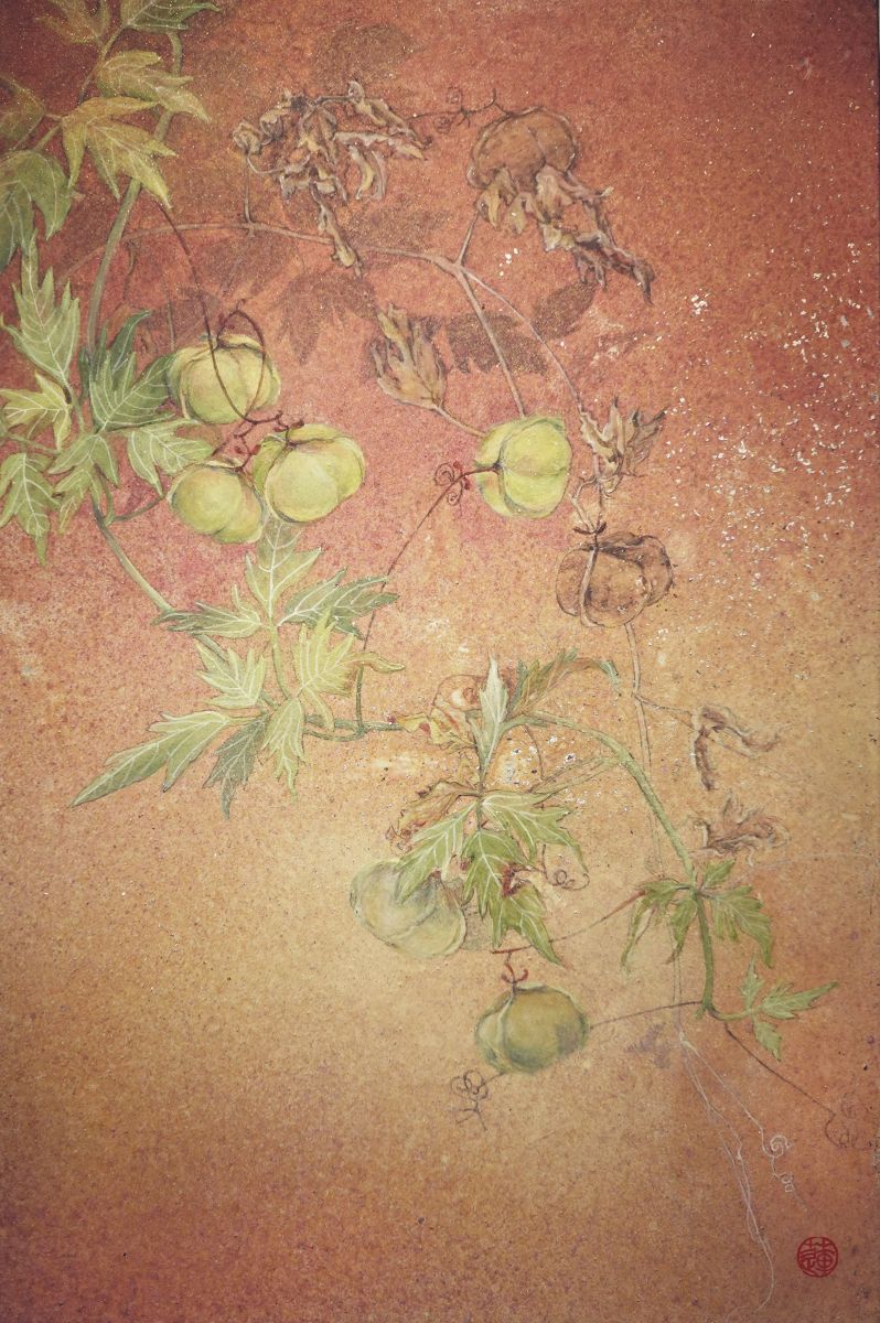 材質 : 礦物顏料、銀箔、麻紙