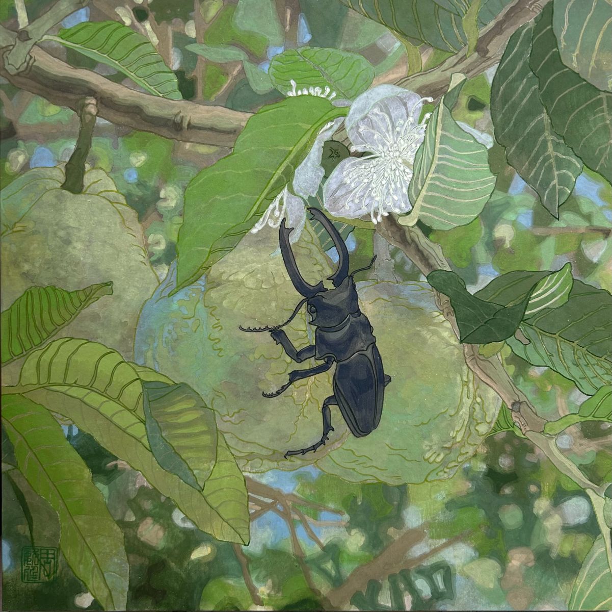 結合芭樂和鬼艷鍬形蟲,以勾勒出中台灣秋天的風物詩。