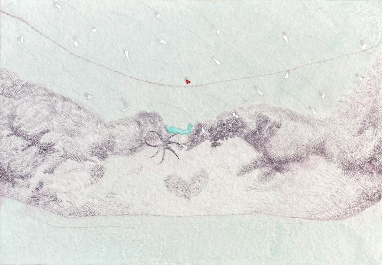 材質 : 紙本設色、裱板、礦物顏料、水彩、墨、銀箔