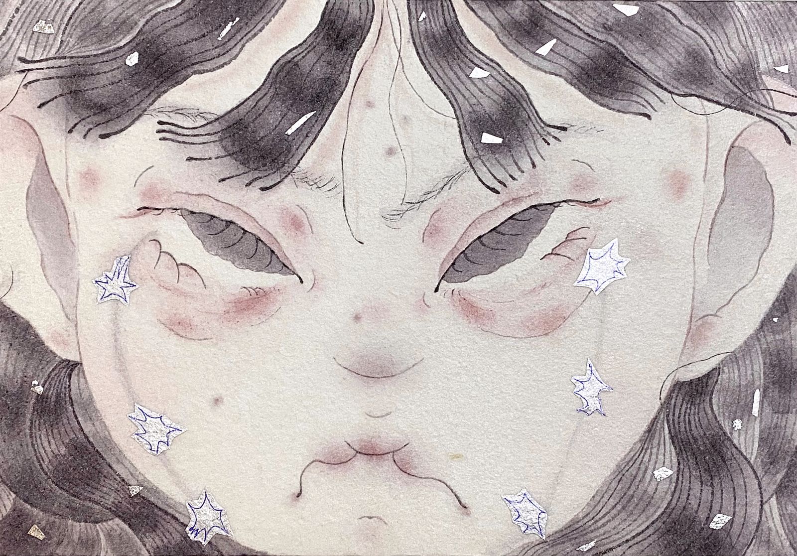 材質 : 紙本設色、裱板、礦物顏料、水彩、墨、銀箔