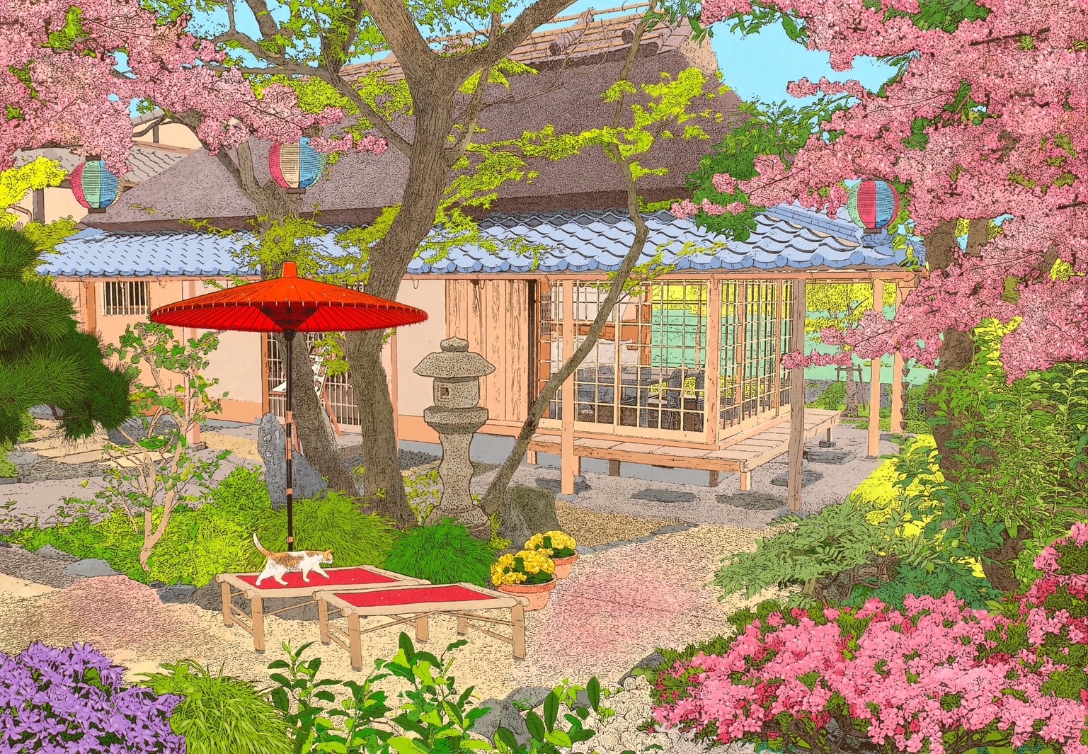 Springtime in Uji, tea brews inside the house.
