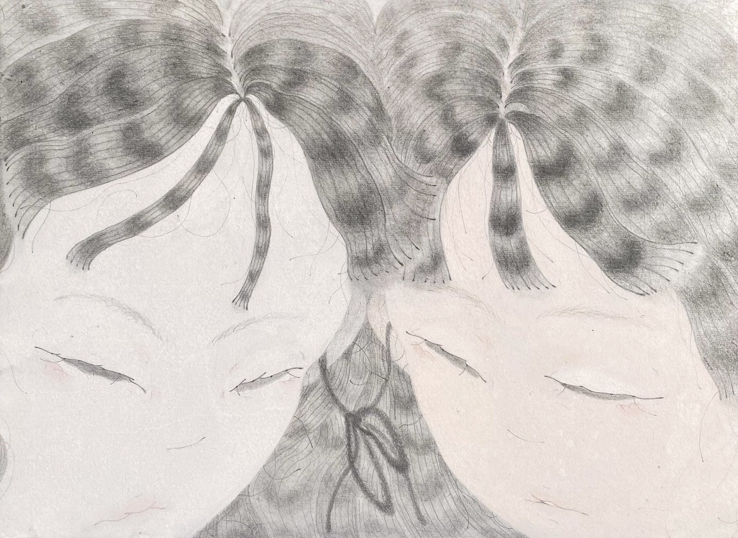 兩個人,誰是誰無從辨別,親密地聆聽。