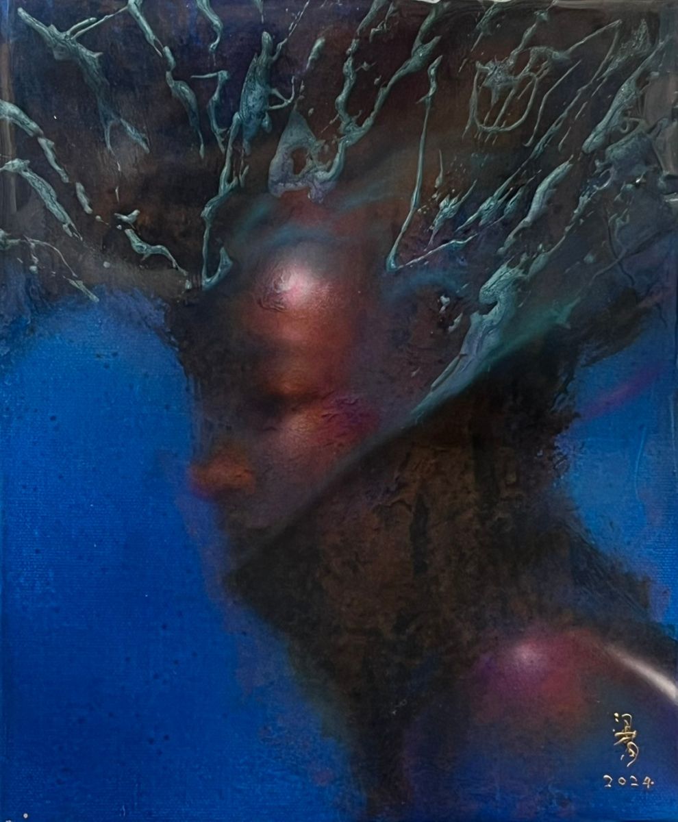 在創作的當下,迷惘的情緒滲透進作品,每一層色彩、每一抹流動的肌理,都記錄了那一瞬的心理狀態。